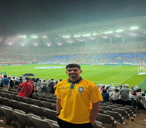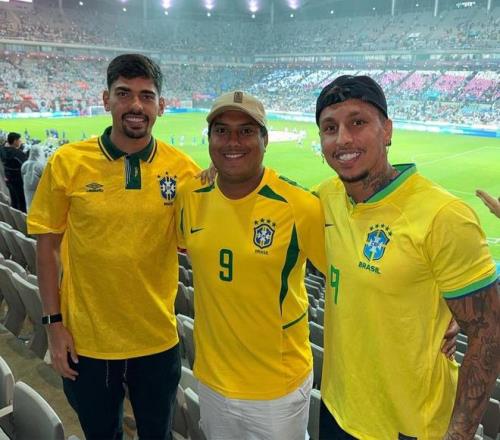 变成球迷,泰山外援克雷桑、马德鲁加现场看巴西vs韩国比赛