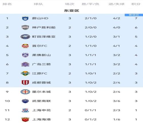 随着蓉城02爆冷,海港02完败,亚冠最新积分榜:中超领头羊垫底